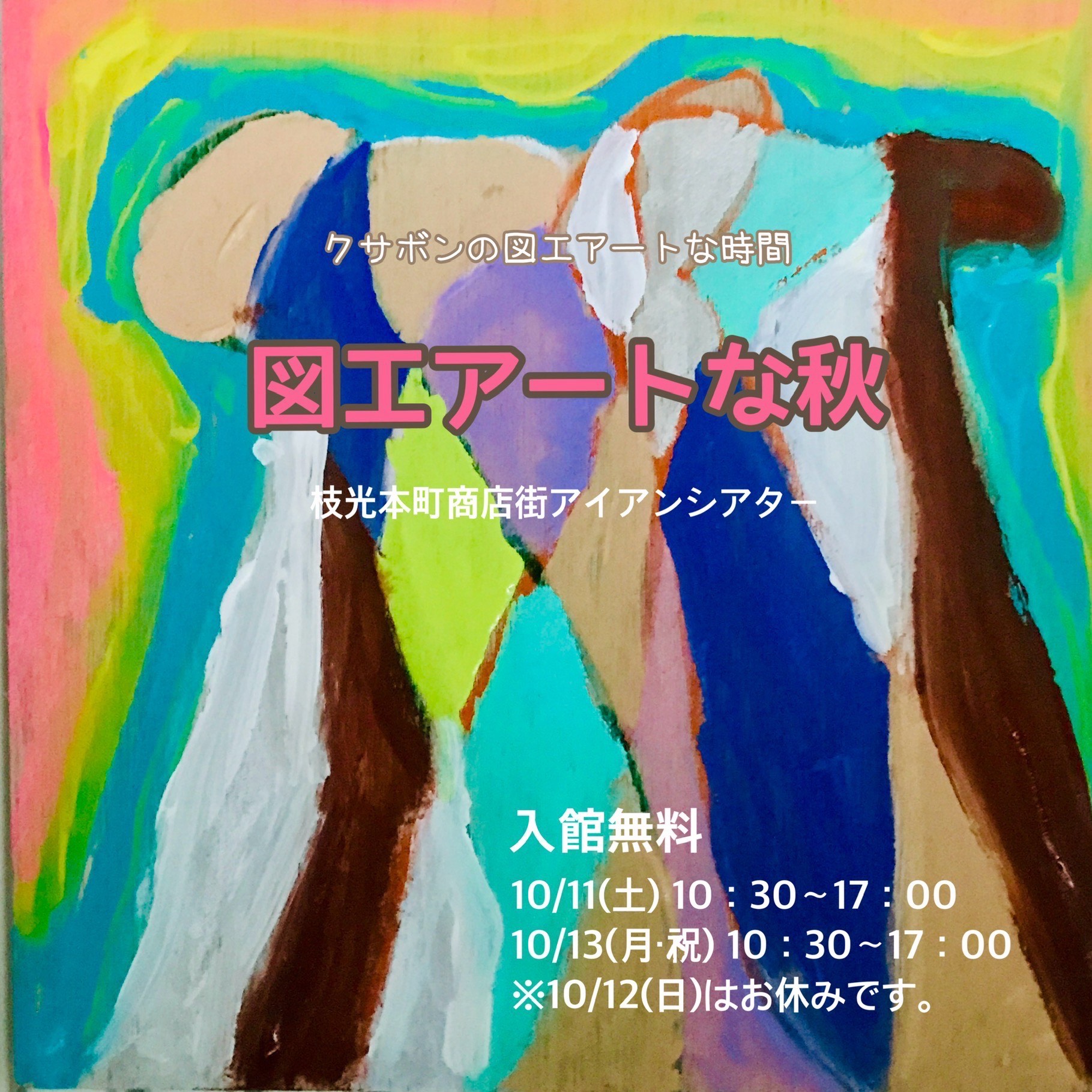 今回のテーマは「図工アートな秋」、なんと今回はクサボンの活動30周年記念個展「気まぐれ自描き日記」と同時開催です!