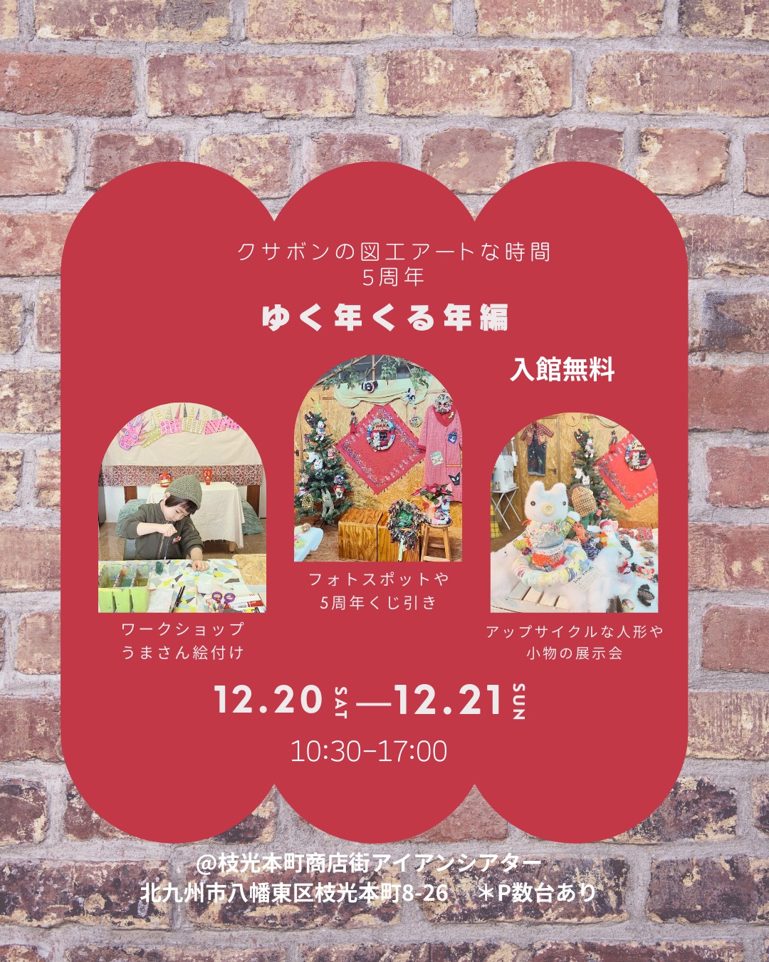 12月のゆく年くる年編では、毎年恒例のクサボンツリーのフォトスポットにクリスマス&新年を迎える準備がもっと楽しくなる雑貨の展示・販売、干支人形絵付けワークショップを開催します♪