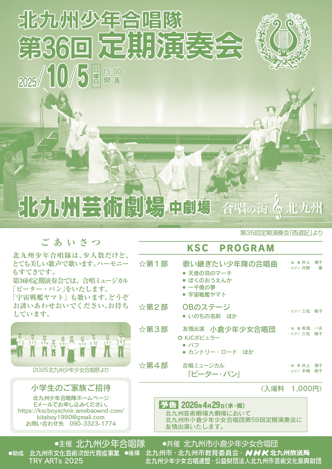 北九州少年合唱隊の愛唱歌、合唱ミュージカル「ピーター・パン」などを演奏します。
