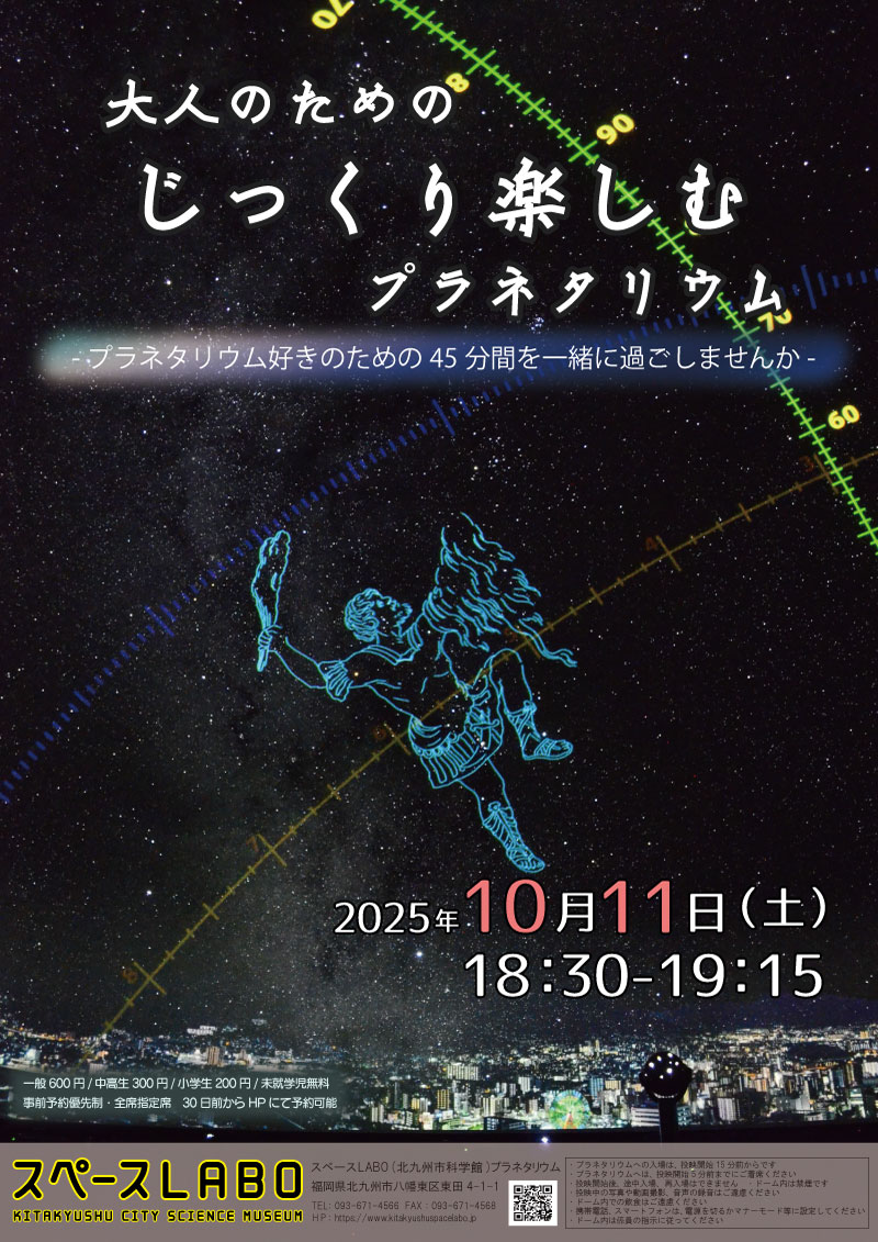 そんな要望にお応えして、大人のためのプラネタリウムを実施します。
