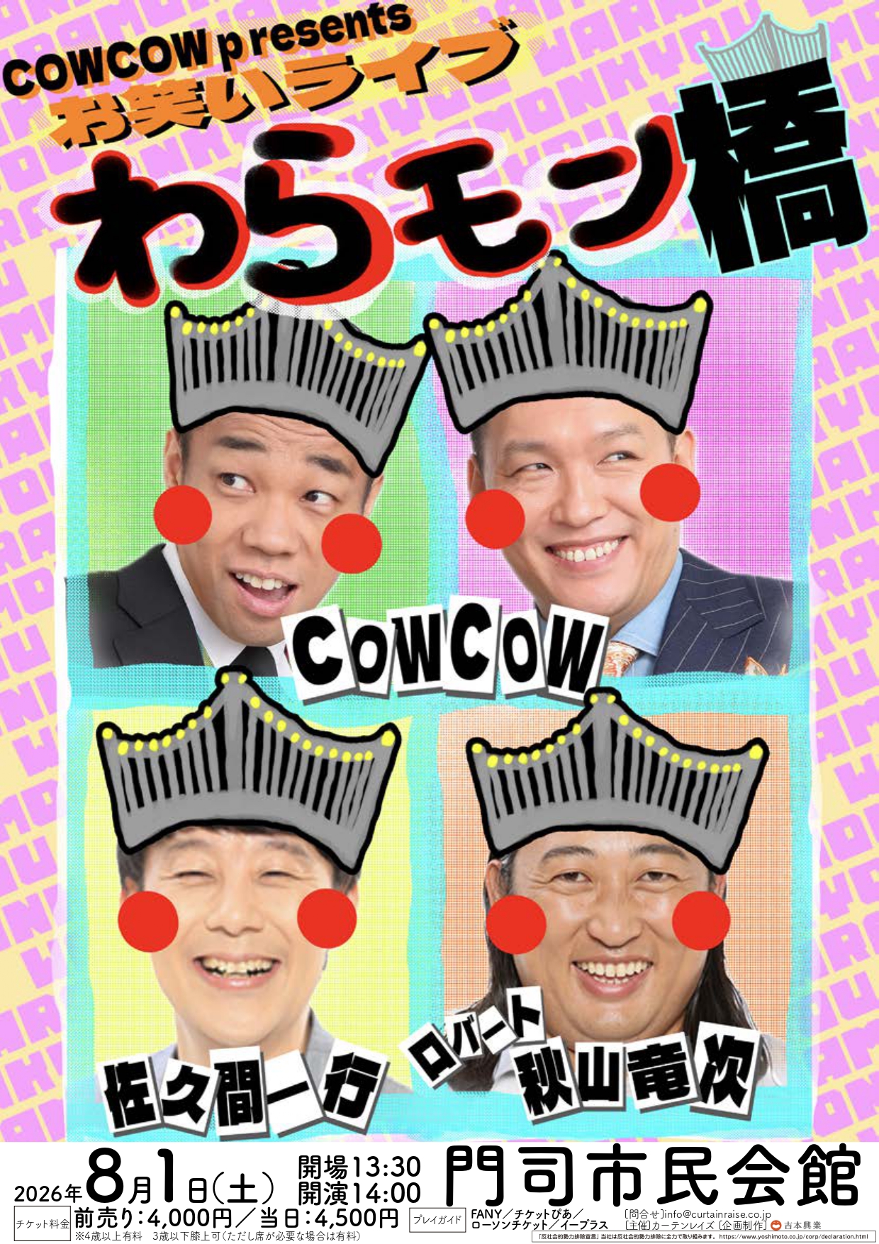 COWCOW、佐久間一行、ロバート秋山竜次の3組による人気シリーズ公演第三弾は、秋山の地元、北九州・門司で開催!
